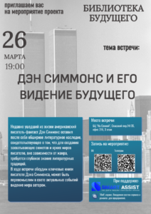 Приглашаем Вас присоединиться к информационно насыщенному, футуристическому мероприятию на тему: «Дэн Симмонс и его видение будущего». Недавно ушедший из жизни американский писатель-фантаст Дэн Симмонс оставил…